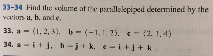 Solved 33 34 Find The Volume Of The Parallelepiped Chegg Com